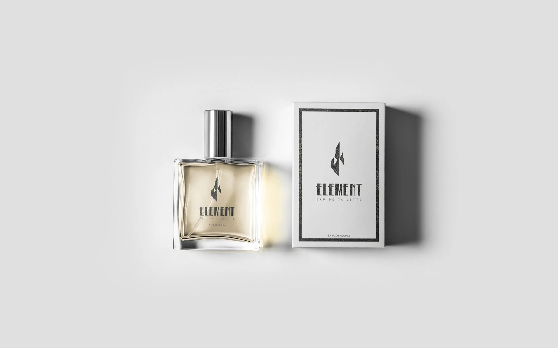Logo and packaging design for Element Fragrance, reflecting their high-end positioning and focus on detail. The final mark draws from geometric crystal forms, with a modern Art Deco theme carried through the entire brand system.